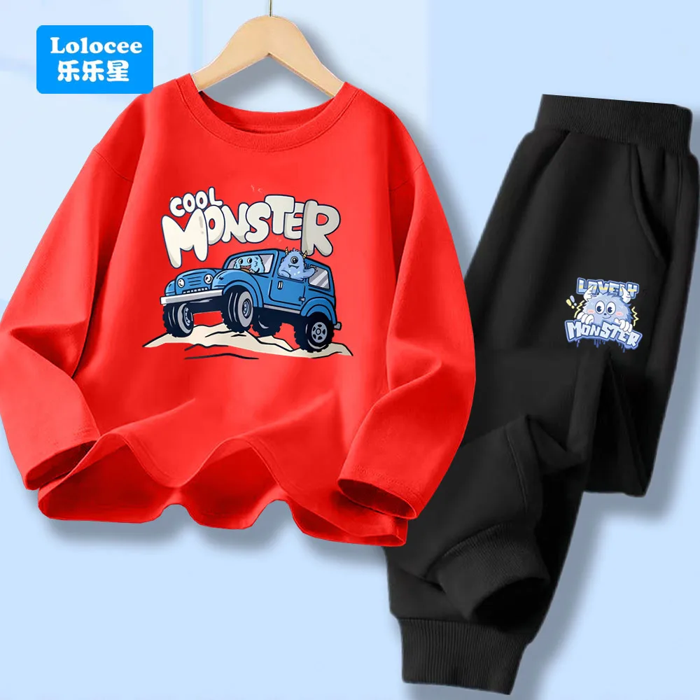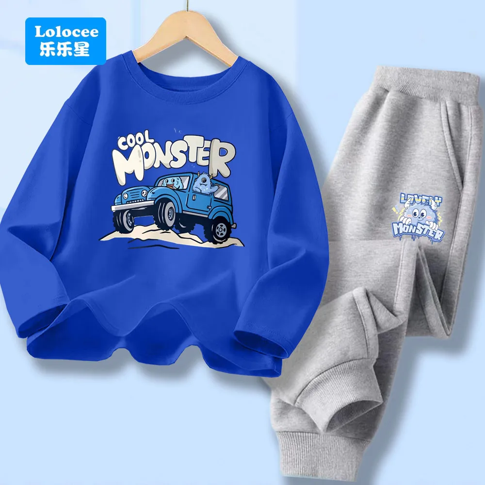 Boys Spring Autumn Clothing Cartoon T-shirt Long Sleeve Tshirts and Pants Sets Children Autumn 2 PCS Sets GSKC1